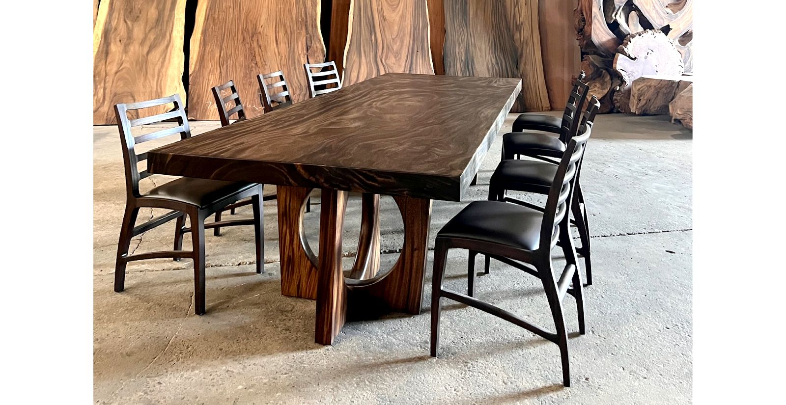 The Chamcha Contemporary Dining Table is a bold statement piece crafted from solid chamcha wood, featuring a clean square profile with a modern contemporary aesthetic. Its Double Crown Base, inspired by the elegance of a royal crown, brings a refined touch of sophistication. Both size and base can be fully customized to suit any space.